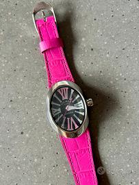 Orologio Locman Change al quarzo (batteria) acciaio, quadrante nero, cinturino in pelle color fucsia. Batteria appena cambiata, orologio funzionante, Ottimo stato, mai usato/indossato, presente confezione originale.