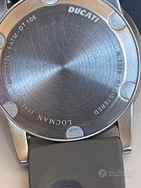 Locman Ducati limited edition , usato come nuovo con scatola e garanzia, cinturino in gomma. Quadrante nero con indici stampati e dettagli gialli . Movimento solo tempo al quarzo . Impermeabilità 5 atmosfere.