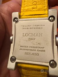 Vendo orologio Locman Italy originale, modello Ref. 430 – Sport, dal design italiano registrato. Caratteristiche principali: •Cassa in alluminio •Vetro perfetto, senza graffi •Cassa in ottime condizioni •Quadrante giallo con funzione doppio fuso orario (World / Home) •Movimento al quarzo •Cinturino in pelle gialla originale, da pulire ⏱️ L’orologio è fermo solo per batteria scarica, non testato ulteriormente. Nessun segno di urti o danni strutturali. Prezzo leggermente trattabile