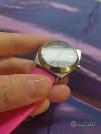 perfettamente funzionante, quadrante madreperla, cinturino in gomma di un bel color fucsia. condizioni ottime . sportivo ed elegante, non stringe ed e' leggero all'indosso.