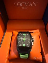 Vendo Orologio Locman Tremila 0550K01S, NUOVO, con garanzia. Marca: Locman Confezione: Scatola originale Locman Garanzia Prodotto: Garanzia Internazionale Locman Genere: uomo Categoria: orologi Sottocategoria: cronografi Codice Produttore: 0550K01S-BKBKGRSG Collezione: New Tremila Colore Quadrante: Nero Materiale Cinturino: Silicone Materiale Cassa: Acciaio e Titanio Dimensione della Cassa: 50x38 mm Resistenza all'acqua: 100m - 10ATM - 10bar Movimento: Quarzo Funzioni: Datario Funzioni: Impermeabile Colore del Cinturino: Verde Indici: A Bastoni Forma Orologio: Tonneau Simile a Bulgari Panerai Anonimo Lorenz Visconti Disponibile a spedire. Per ulteriori info contattatemi.