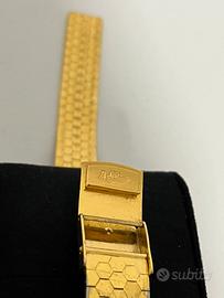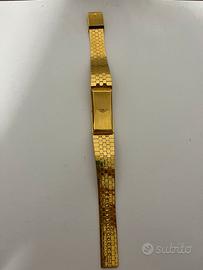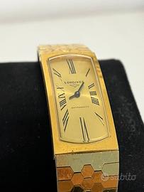 Orologio Longines in stile vintage, con alcune parti realizzate in oro, che gli conferiscono un aspetto prezioso ed elegante. La cassa rettangolare dorata e il caratteristico bracciale a maglie esagonali tono oro rendono il design distintivo e sofisticato. Caratteristiche principali: •Marca: Longines •Parti in oro •Stile: Vintage / Elegante •Colore: Oro •Quadrante: Numeri romani neri, forma rettangolare •Bracciale: Metallo dorato con motivo esagonale •Condizioni: Buone condizioni estetiche •Adatto sia per uso quotidiano sia per collezionisti