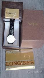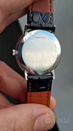 Orologio da uomo vintage Longines 1087-1 a carica manuale, calibro 6902, del 1977. Condizioni: originale al 100% in tutte le sue parti, in ottime condizioni generali e perfettamente funzionante. Marca: Longines. Referenza: 1087-1 Quadrante: quadrante argentato con finitura satinata verticale, indici a bastone applicati con inserti neri e lancette a bastone nere. Materiali: cassa in acciaio inossidabile con finitura lucida, lunetta smussata, anse angolari, fondello a pressione satinato, vetro acrilico. Corona: originale logata e perfettamente funzionante. Movimento: movimento Longines calibro 6902 a carica manuale, scappamento ad ancora, 17 rubini, bilanciere monometallico, 28.800 alternanze/ora. Cinturino: nuovo cinturino in pelle nera XL con fibbia originale argentata logata. Con scatola e documenti originali. Impermeabilità non testata. La cassa misura circa 34 mm di diametro (esclusa la corona), con una distanza tra le anse di 38 mm, uno spessore di 9 mm e una larghezza delle anse di 18 mm. Questo articolo è di seconda mano, pertanto potrebbe presentare graffi, macchie, scolorimenti, scrostature e segni di usura dovuti all'età. Se siete sensibili a tali caratteristiche, vi prego di astenervi dal fare offerte. Salvo diversa indicazione, l'orologio non è stato revisionato. La manutenzione è a carico dell'acquirente. Disponibile a scambi con segnatempo di mio interesse con differenza dare/avere da concordare. Consegna a mano su Roma e provincia. Le immagini fanno parte della descrizione. Vendita con formula visto e piaciuto. Se hai bisogno di ulteriori informazioni o assistenza, non esitare a contattarmi. Apprezzo il tuo interesse e sei il benvenuto anche a dare un'occhiata ai miei altri annunci dove vendo anche TAG Heuer, Mondia, Lanco, Citizen, Seiko, Tudor, Hamilton, Omega, ecc.
