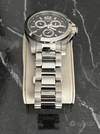 Quadrante nero impreziosito da lancette luminose color argento. Cassa in acciaio inossidabile color argento con cinturino in acciaio inossidabile color argento. Movimento al quarzo. Impermeabilità fino a 300 metri/1000 piedi. Lunetta fissa. Vetro zaffiro antigraffio. Fondello pieno. Chiusura deployante deployante. Corona a vite. Dimensioni cassa 41 mm x 15,15 mm. Cinturino 22 mm x lunghezza. Orologio Longines L37004566 Conquest.