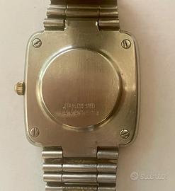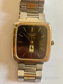 Modello anni 80/90, condizioni buone con segni di utilizzo Movimento quartz Cassa rettangolare in acciaio Bracciale originale acciaio con inserti dorati Quadrante nero con logo Ferrari Da ritirare a mano in Torino zona Sassi o zona Corso Vittorio Emanuele