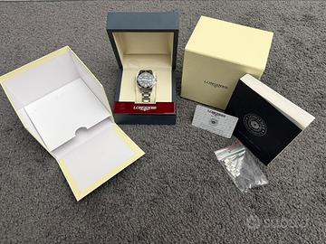 Longines Hydroconquest Automatic L3.694.4.53.6 con data, come nuovo. Raro con quadrante con tutti i numeri (di solito Hydroconquest presenta solo 6,9 e 12).Revisionato a 09.2025. Acquistato ad agosto 2015. Univo proprietario. Tenuto maniacalmente. Full set: scatola, controscatola, 3 maglie aggiuntive, manuale d’uso con porta card all’ultima pagina, card di garanzia e scontrino del test iperbarico effettuato sempre a 09.25 e superato.