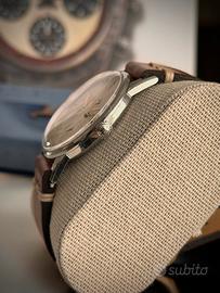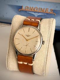 Se vi piacciono gli orologi seguite pure la mia pagina Instagram Dimawatches, dove pubblico di volta in volta tutti gli orologi disponibili. Guardate quanto è bello al polso questo orologio! Longines in cassa “Calatrava” Ref 8889 - 1 Revisionato 1 anno fa Mosso dal Calibro 23Z manuale Bella secondina ad ore 6 Corona originale Cassa in acciaio da 35 mm Fondello chiuso a scatto Cinturino in pelle artigianale,fatto fare a mano personalmente,con cuciture a contrasto che riprendono il colore del quadrante per un match perfetto! Fibbia logata Bella patina sul quadrante,di quelle belle che ti fan subito apprezzare il carattere vintage di questi orologi che da oltre 60 anni raccontano il tempo che passa ❤️ Funziona perfettamente,pronto per essere indossato! Non sono interessato a scambi con Omega,Zenith,Seiko,Citizen,Tissot,Bulova,Eberhard,Lanco