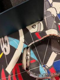 Orologio perfettamente funzionante proveniente da collezione privata , dotato di tutte le sue componenti originali e coeve ( bracciale in acciaio con clessidra alata sulla fibbia , corona marchiata , fondello originale con seriali ) .