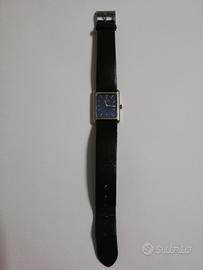 Bellissimo orologio da polso vintage del 1974,Longines, Tank,con cassa rettangolare in acciaio e quadrante blu. A carica manuale. Sulla fibbia e sul quadrante è presente il celebre logo Longines (Clessidra Alata). Cinturino in vera pelle, di colore blu notte. In ottime condizioni estetiche e funzionante.