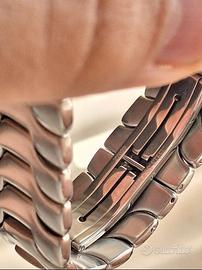 Orologio Longines vintage al quarzo, ref. 28198571. Orologio in funzione, batteria cambiata da qualche mese. In ottime condizioni generali, tranne il fondello che è rigato e sul quadrante alcuni indici hanno perso la luminescenza. Ma in generale un ottimo orologio e con un cinturino molto particolare e raro. Un orologio rappresentativo sia per il marchio che per lo stile che ha. Impermeabile. Cinturino a scomparsa con doppio aggancio. Per qualsiasi informazione non esitate a contattarmi. No documenti e no scatola.