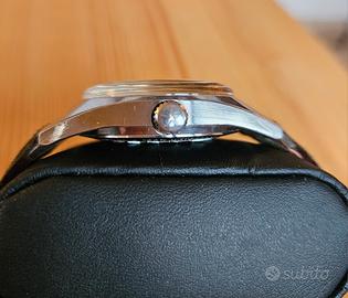 Bellissimo ed affascinante Lorenz Aquastar anni '60. Movimento automatico perfettamente funzionante; cassa, quadrante e vetro in ottime condizioni. Indici e sfere al trizio virati color nocciola. Ghiera interna girevole, corona originale logata. Cassa diametro 37 mm senza corona. Non ne garantisco l'impermeabilità.
