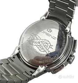 Lorenz Aquitania 26428 cronografo swiss made ronda 5020 45mm n.o.s. big date h6 L'Orologio Lorenz Aquitania 026428AA Swiss Made Cronografo realizzato con cassa tonda in acciaio e quadrante bianco con datario doppio. La combinazione di acciaio e legno del bracciale conferisce un design unico e moderno. Lorenz Aquitania 26428 cronografo swiss made ronda 5020 45mm n.o.s. big date h6 L'Orologio Lorenz Aquitania 026428AA Swiss Made Cronografo realizzato con cassa tonda in acciaio e quadrante bianco con datario doppio. La combinazione di acciaio e legno del bracciale conferisce un design unico e moderno. Orologio di sostanza molto bello e di classe Ottime condizioni solo qualche leggero segno BATTERIA SCARICA BISOGNA SOSTITUIRLA listino 530euro