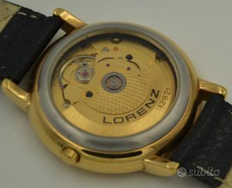 Orologio Lorenz Automatico anni '90, cassa incamiciata da circa 38 mm., movimento automatico a vista, dial e cinturino in pelle neri, perfettamente funzionante. Prezzo non trattabile.