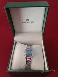 Orologio di lusso! Lorenz, modello Bel Ami Tonneau da donna in acciaio e 36 brillanti 0,145 kt sulla lunetta. Cassa Tonneau e bracc. Si/si zaffiro bomb. Er 5 ATM.A quarzo.