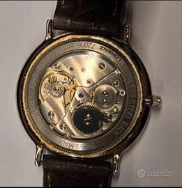 In vendita elegante orologio Lorenz con movimento meccanico a carica manuale, un vero classico per intenditori. Caratteristiche principali: Movimento: Svizzero (Swiss Made) a 17 rubini, visibile grazie al fondello trasparente in vetro. Funzionamento: PERFETTAMENTE FUNZIONANTE, tiene bene il tempo. Quadrante: Bianco con numeri arabi e piccoli secondi a ore 6. Cinturino: In VERA PELLE marrone con stampa coccodrillo, di ottima qualità. Cassa: In acciaio inossidabile, condizioni estetiche eccellenti come da foto. Un pezzo di classe, ideale per chi cerca un orologio meccanico affidabile e raffinato. Spedizione rapida e imballaggio accurato.