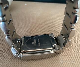 Vendo bellissimo orologio LORENZ Montenapoleone, acciaio, quarzo, quadrante rettangolare girgio scuro, rotella superiore ore 12. Cinturino in acciaio (misura polso 17 cm). OTTIMO STATO. Confezione originale.