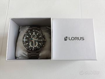 vendo orologio cronografo Lorus Sports RM383DX9 da uomo con quadrante nero e bracciale in acciaio, usato quasi niente, pari al nuovo.