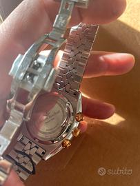 Bellissimo orologio crono Lucien Rochat indici e lancette oro rosa 41 mm particolare bracciale in acciaio con chiusura deployant se delle mie parti..scambio con orologi pari livello/condizioni come longines eberhard rado mido panerai tudor iwc heuer lanco glycine anche con differenze..non vendo con tutto subito ,o bonifico o PayPal spedisco con corriere espresso a 10 euro anche se preferisco consegna a mano