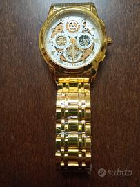 Splendido orologio da uomo in acciaio inossidabile con quadrante bianco e finiture dorate. Design elegante e moderno, perfetto per occasioni formali o come regalo di classe. Condizioni: Nuovo, mai indossato.