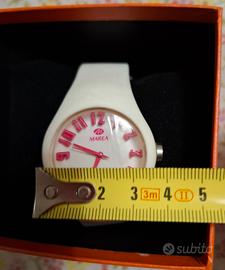 Orologio marca Marea in gomma e fibbia di chiusura in metallo. Molto comodo da indossare.