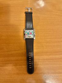 Vendo Orologio Marea quadrato con simbolo Monoscopio interno. Orologio funzionante al quarzo, ma il cinturino è crepato. fornisco scatola originale e cuscinetto interno.