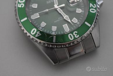 Vendo orologio da uomo marca MAREA modello B3609418 (brand spagnolo), movimento analogico con datario, cassa in acciaio misura 43 mm, impermeabilità 20 atmosfere, cinturino in acciaio.- Piccoli segni di usura sulla ghiera, in corrispondenza dei minuti “40” e “10”.- Completo di confezione originale, più parti cinturino.- Acquisto del 28.10.2021 (come da foto), vendo a 25 euro.- Posso inviare altre foto.-