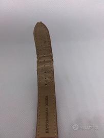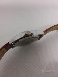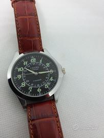 Orologio maschile 41 mm in acciaio lucido e satinato, movimento con carica manuale 17 rubini a vista in fondello con chiusura a vite. Numeri arabi con luminescenza, datato senza rimessa rapida. Marchio russo/cinese periodo 2000-2010. Cinturino usato.