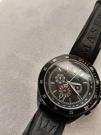 Elegante orologio multifunzione Maserati ref. R8851101001 Quadrante nero con cronografo. Cinturino in silicone Lunetta tachimetrica. Molto bello ed elegante. Misura cassa 46mm. In ottimo stato , un graffietto sul vetro , vedi foto per dettagli. Orologio per chi ama distinguersi.