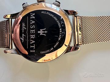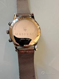 Orologio Maserati Successo 2020, in buonissime condizioni, completamente funzionante e integro nella sue parti, con un elegante cinturino in maglia di acciaio che lo rende un pezzo molto richiesto. Con qualche irrilevante segno di usura. Appena disinfettato e pulito perfettamente in tutte le sue parti. Non posseggo più la scatola. Prezzo ottimo!!