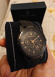 Orologio Maserati Successo 44 mm Cronografo (rif. 290540172 / EAN 8033288893943), regalatomi per Natale 2023, mai indossato, completo di scatola originale, garanzia, documenti che ne attentano l'originalità e scontrino, vendo perché mi piange il cuore a tenerlo in un cassetto (utilizzo solo uno smartwatch e non partecipo ad occasioni mondane che mi permettano di sfoggiarlo)..