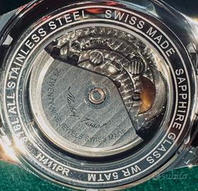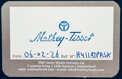 Orologio Mathey-Tissot mod. Urban G130, con riserva di carica,secondina alle ore 6 e data alle ore 3. Cassa 42 mm. in acc.inox 316L,Quadrante blu skay con inserti in argento e lancette argento con sopra bianco luminescente. Fondello a vista,meccanismo swiss made automatico. Bracciale con chiusura a farfalla logato. Orologio full set con garanzia attiva di 2 anni ancora mai messo al polso.