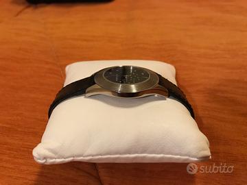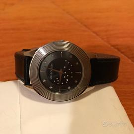 Bellissimo orologio marchio Mauboussin 78 Tours semi nuovo quadrante ultra piatto nero con presenza di diamanti sintetici su tutto il quadrante, diametro cassa 34mm. movimento quarzo, no scatola ne documenti. Doppio bracciale nero fibbia logata. Marchio francese ora passato sotto controllo di Singapore. Bello e particolare. Ottimo per donna ma misura comunque unisex. Lavorazioni e finiture pregievoli. Consegna a mano possibile e gradita se in zona con pagamento cash oppure bonifico bancario e spedizione assicurata dell’oggetto. Grazie non ho paypal. Non sono interessato a scambi con Cartier Bulgari Longines zenith Chopard ecc.
