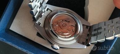 Orologio meccanico automatico Tandorio, quadrante con effetto cangiante opalescente, Fondello avvitato con movimento a vista. Diametro cassa 40mm. Praticamente nuovo.