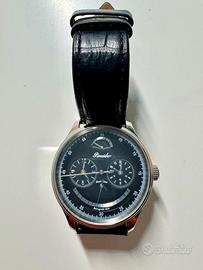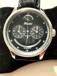 Perfetto, come nuovo. Perfettamente funzionante, in acciaio inossidabile, meccanico a ricarica automatica. Diametro 42 mm. Cinturino originale in vera pelle. Retrogrado con doppio orario. Pezzo da collezione ! Vendo per inutilizzo.