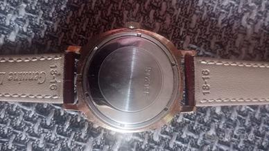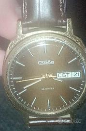Orologio meccanico a carica manuale marca Slava,diametro cassa 38 mm. Datario a ore 3, cinturino in pelle,con chiusura ad ardiglione in acciaio.