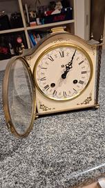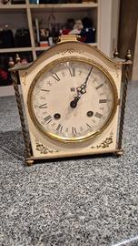 Vendo elegante orologio da tavolo meccanico Melux, stile classico con numeri romani e decorazioni dorate.