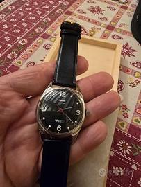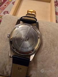 Orologio meccanico vintage Jawan anni 80 A carica manuale Perfettamente funzionante e ben preciso Quadrante nero con indici presenti e numeri Lancette ad ago Lancetta secondi rossa. Vetro senza graffi Cassa in acciaio Fondello griffato Hmt con numero di serie Misura cassa mm 38 corona compresa Cinturino nuovo da mm 18