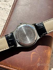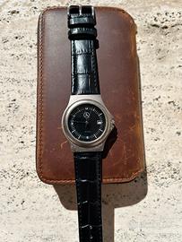 Vendo Orologio Mercedes Benz Collection degli anni 1990-2000. Orologio che veniva regalato a chi acquistava un auto Mercedes. Orologio al quarzo perfettamente funzionante con batteria sostituita a marzo 2026 Cassa: Realizzata in metallo base con finitura satinata/sabbiata (come si nota dai segni di usura che rivelano il metallo sottostante). Il fondello è invece in acciaio inossidabile (Stainless Steel Back), come indicato dall'incisione. Per altre foto e info contattami in privato Spedizione veloce in massimo 48H