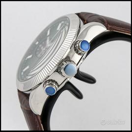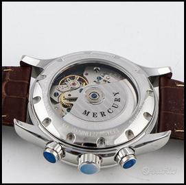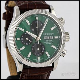 Vendo ad Euro 600,00 elegante cronografo Mercury Condor, movimento automatico svizzero ETA 7750 Valjoux, cassa (45mm) e cinturino in pelle marrone con chiusura a farfalla. quadrante verde e nero e grigio con indici argento. Nuovo, mai indossato, full set custodia e documenti. Orologio non più in produzione con referenza MEA475-SL-12.