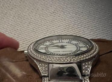 Orologio donna usato poco. In acciaio con zirconi. Ben conservato. Comprensivo di maglie per allargare il polso, scatola e documento di vendita.
