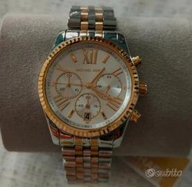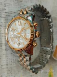Orologio Cronografo da donna Michael Kors della collezione Lexington, cassa in Acciaio Inossidabile da 38mm di diametro, cinturino in Acciaio Inossidabile con Trattamento IP Oro. L'Orologio è water resistant fino a 10 ATM e verrà spedito nella confezione originale con la garanzia ufficiale Michael Kors internazionale di 2 anni.