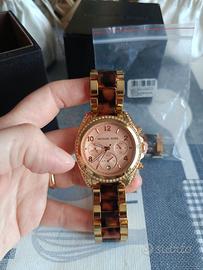 Orologio in ottime condizioni praticamente nuovo usato poco con scatola originale, ricambi per l'aggiunta al cinturino e garanzia. Nessuna imperfezione e graffi, colore oro e maculato con pietre sul display, particolarità è un modello da collezione unico.