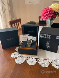 Orologio MIDO Multifort Escape automatico referenza M032607360900, numero seriale 5A1U6CP72! Acquistato aogosto 2024, garanzia internazionale due anni. Orologio impeccabile, il cinturino presenta normali segni di usura, in regalo un cinturino verde compatibile.