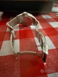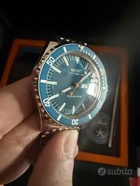 Vendo splendido Mido Ocean Star automatico, orologio subacqueo di alta qualità, perfetto sia per uso quotidiano che per appassionati. L’orologio è in ottime condizioni, come da foto, e viene venduto con set completo originale: ✔️ Scatola originale Mido ✔️ Cinturino in acciaio montato ✔️ Cinturino aggiuntivo in tessuto (originale) ✔️ Maglie extra per regolazione ✔️ Documentazione e cartellini originali ✔️ Edizione celebrativa (75th Anniversary Ocean Star) 🔹 Movimento automatico 🔹 Datario giorno/data 🔹 Ghiera girevole da sub 🔹 Ottima qualità costruttiva svizzera Orologio sempre tenuto con cura. Presenta solo lievi segni d’uso normali (visibili in foto), nulla che ne comprometta estetica o funzionamento. Consegna a mano in provincia di modena da concordare PREZZO LEGGERMENTE TRATTABILE SE INTERESSATI