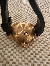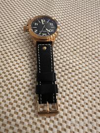 Orologio Quandom perfettamente funzionante al quarzo cinturino cuoio marrone cassa color oro rosa molto bello e grande come nuovo.