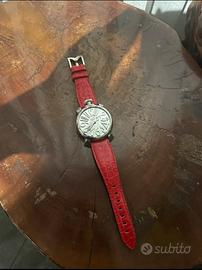 Cinturino rosso e quadrante argento