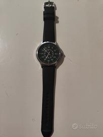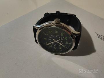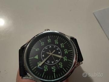 Orologio da polso al quarzo, mai indossato, condizioni estetiche pari al nuovo. Ispirato ai modelli della "German Airforce" degli anni '40, prodotto da Eaglemoss Collections. Caratteristiche lancette a freccia, ottima luminescenza. Stile militare vintage, ispirato agli orologi dei piloti, in acciaio inossidabile, cinturino in gomma. Diametro vetro 41,5 mm. Revisionato e perfettamente funzionante