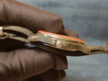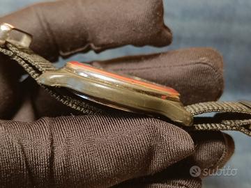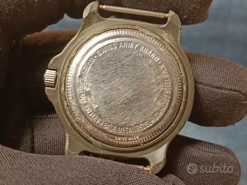 Un pezzo di storia svizzera al polso Nato nel cuore della Svizzera nel 1884, Victorinox è il marchio che ha dato vita al leggendario Swiss Army Knife, simbolo mondiale di affidabilità e ingegneria funzionale. Da questa stessa filosofia -precisione, robustezza e design senza fronzoli - nel 1989 nasce la linea di orologi Swiss Army, pensata per offrire strumenti affidabili, pratici e costruiti per durare. Il modello in vendita Questo orologio Swiss Army incarna perfettamente lo spirito Victorinox: essenziale, leggibile, resistente e con un'estetica senza tempo. La combinazione del quadrante bianco, numeri neri ad alta leggibilità e dettagli rossi tipici del brand lo rende immediatamente riconoscibile. Caratteristiche principali Diametro cassa: circa 39 mm Lug to lug: 43 mm Spessore: 10 mm Quadrante: bianco con doppia scala 12/24h Logo Victorinox Swiss Army a ore 12 Finestra data a ore 3 Cinturino in tessuto resistente e confortevole - Stile: militare, sportivo, quotidiano Le proporzioni compatte lo rendono perfetto per qualsiasi polso, mentre il design pulito e funzionale richiama l'estetica dei primi modelli Swiss Army degli anni '90, oggi molto ricercati dai collezionisti. Perché scegliere un Victorinox Swiss Army - Affidabilità svizzera: movimenti precisi e costruzione robusta - Durabilità superiore: materiali selezionati e test severi - Iconicità: un marchio con oltre 140 anni di storia e un'identità unica - Versatilità: perfetto per uso quotidiano, outdoor o collezione Ideale per Chi cerca un orologio autentico, pratico, con un forte carattere storico e un'estetica militare elegante. L'orologio è perfettamente funzionante e viene venduto con una pila nuova al suo interno. Condizioni come in foto. Cinturino nuovo. Altro nel mio profilo 😄