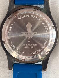 solo Watch militum skull teschio blu cinturino silicone è cassa bronzo con bellissima patina. edizione limitata limited edition piccolo fregio sul quadrante come si vede da foto . automatico solo orologio