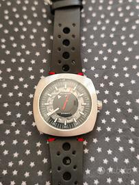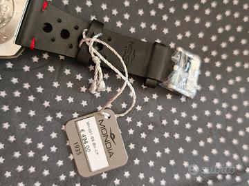 Orologio Mondia History Parade "NUOVO", mai indossato! Con ancora le pellicole su cinturino e quadrante. La parte posteriore è completamente trasparente e dal quadrante si intravede il meccanismo. Orologio di pregio, di attuale produzione che reinterpreta le linee anni 70/80. Numero Riferimento: MB-001-SS-BK-CP Cassa 42 mm, movimento Automatico Seiko NH72A, lunghezza cinturino 21 cm. 5 ATM . Compreso di astuccio originale.